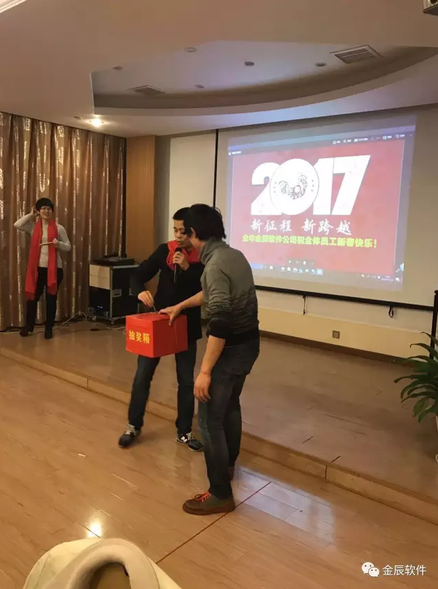 公司領(lǐng)導(dǎo)與員工親情互動(dòng)、激動(dòng)人心的抽獎(jiǎng)活動(dòng),讓笑聲、掌聲、歡呼聲一直在會(huì)場(chǎng)上蕩漾。整場(chǎng)聯(lián)歡會(huì)高潮迭起,呈現(xiàn)出金辰軟件這個(gè)大家庭的歡樂和諧。